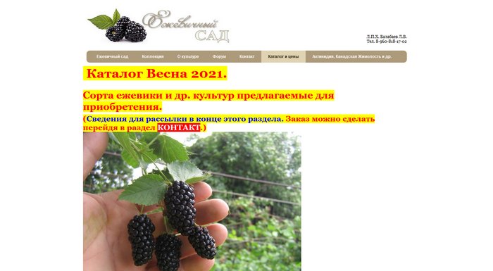 Питомники и интернет-магазины ежевики (сайты, адреса, телефоны), где можно заказать и купить посадочный материал (саженцы, черенки) ежевики.